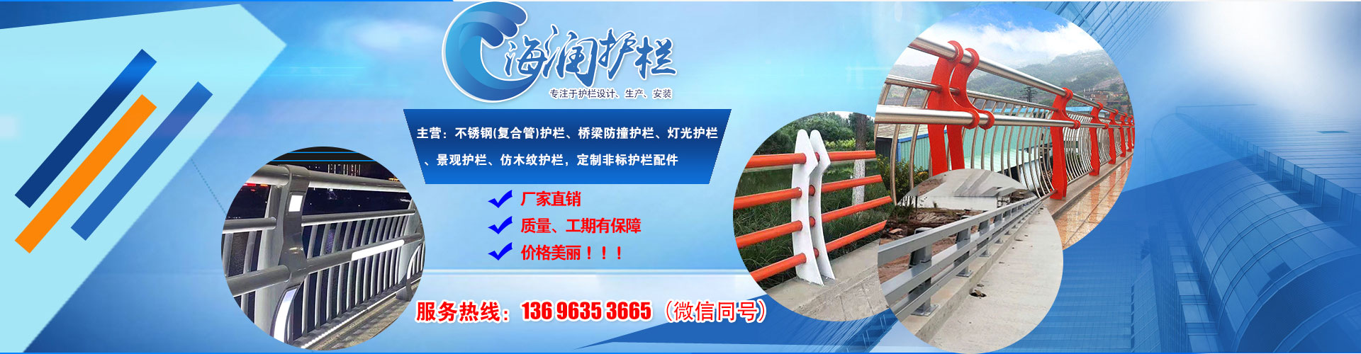山東海潤金屬制造有限公司,位于山東?聊城,地理位置優越,交通便利。主營:碳鋼防撞護欄 ,鍍鋅管防撞護欄 ,方管防撞護欄 ,鋼板護欄立柱, 木紋轉印欄桿,不銹鋼復合管,復合管橋梁護欄,景觀護欄,復合管防撞護欄管。本公司具有一整套完善的運營模式。常年專業從事生產、銷售各種不銹鋼復合管橋梁護欄、不銹鋼復合管道路欄桿、Q235道路防撞護欄、不銹鋼復合管、304不銹鋼復合管護欄、201不銹鋼復合管護欄、護欄立柱、等新型金屬材料;另設金屬護欄工程制作安裝公司,公司擁有完整的不銹鋼及不銹鋼復合管生產線24條,以及各類金屬加工設備多套(數控等離子切割機、沖床、冼床等),公司還擁有獨立的鍍鋅和噴塑車間,良好地處理好鋼板表面效果。我公司生產的不銹鋼碳素鋼復合管、不銹鋼碳素鋼復合管護欄產品具有外表美觀、防銹耐腐蝕性好、易安裝等性能,不銹鋼復合管廣泛應用于橋梁/河道、市政建設、景觀護欄、城市護欄、道路護欄、人行扶手、路燈燈桿、高架路橋、立交橋、高速公路等地方,所生產不銹鋼復合管產品全部按照不銹鋼復合管標準生產,質量可靠公司將繼續秉持追求卓越,永續經營的經營理念,立足市場,挑戰自我,服務客戶!公司宗旨:至上的品